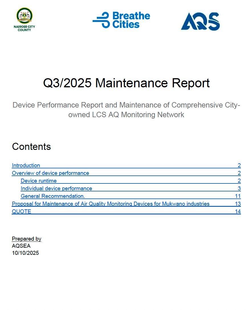 This report outlines the development of Nairobi’s City-Owned Air Quality Data Management System (AQDMS) and Public Access Portal for improved data management and accessibility.